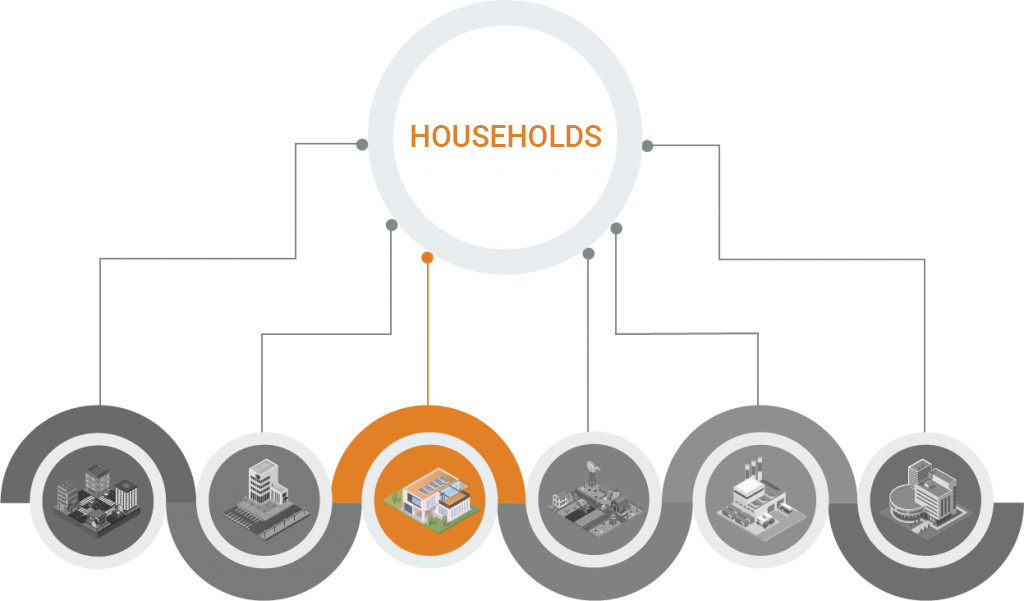 Industry, transport, service activities, construction, agriculture and households.